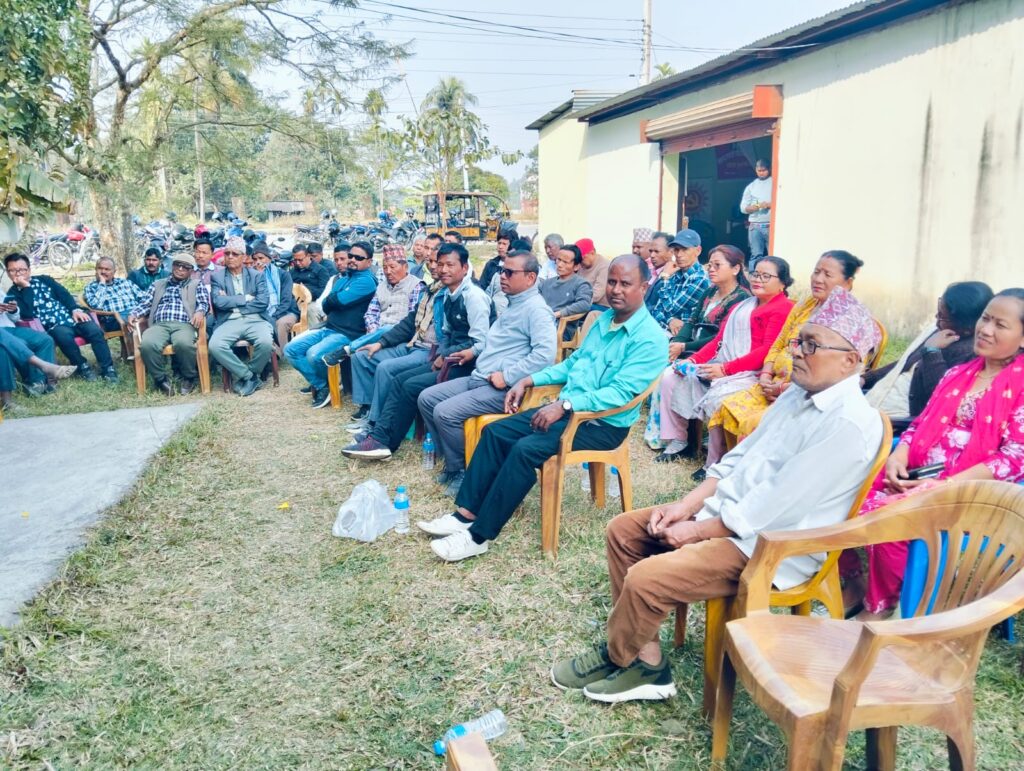 यहाँ उनको कुनै साइनो छैन । भोली कहाँ हराउने हुन् टुङ्गो छैन । त्यसैले मुुलुक बनाउने की ध्वस्त पार्ने लाई रोज्ने तपाईहरुको हातमा आएको छ उहाँले बताउनुभयो । कार्यक्रम पार्टीको गाउँकमिटी अध्यक्ष बिस्नु न्यौपानेको अध्यक्षमा भएको थियो भने सचिव कृष्ण महत्तोले सञ्चालन गर्नुभएको थियो , कार्यक्रममा उपाध्यक्ष राजकुमार राजवंशीले स्वागत मन्तब्य राख्नु भएको थियो ।
